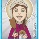 St Genevieve shows students how she lived the virtue of courage by risking her life to gather food for Parisians who were being starved by Franks.